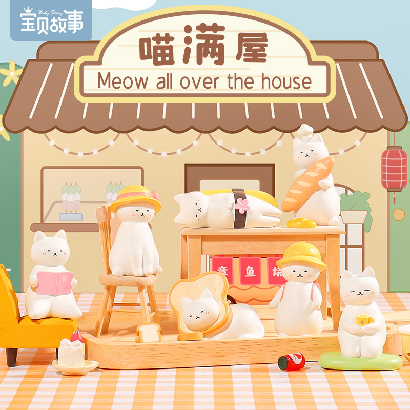 喵满屋盲盒公仔手办日系可爱卡通猫咪树脂桌面小摆件儿童毕业礼物